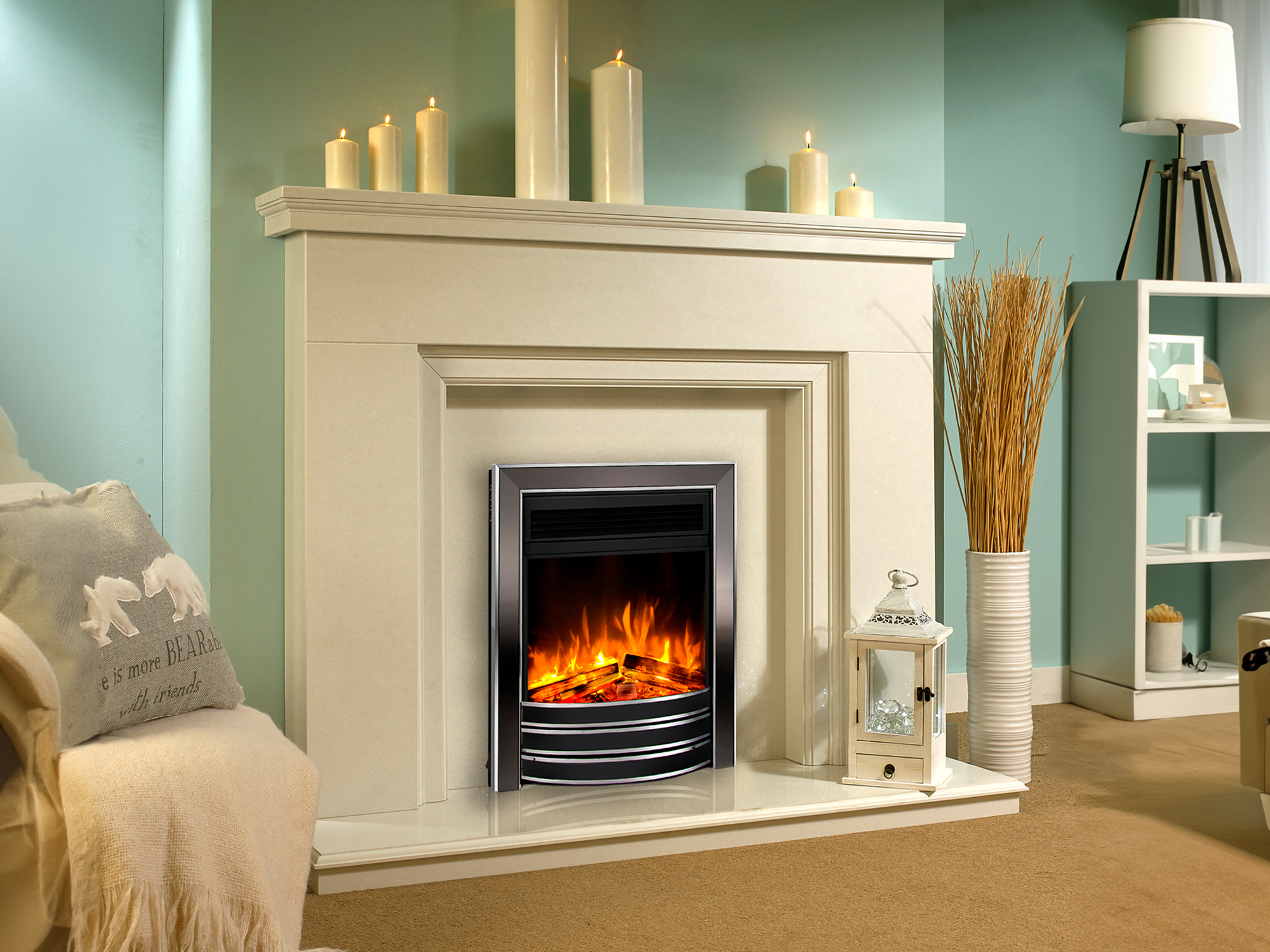 This Marble Electric Fire Suite includes the full Sherbourne Marble Fireplace (including the fire surround, hearth, back panel and shelf), and the Celsi Ultiflame Ultra SL Autograph Electric Fire.